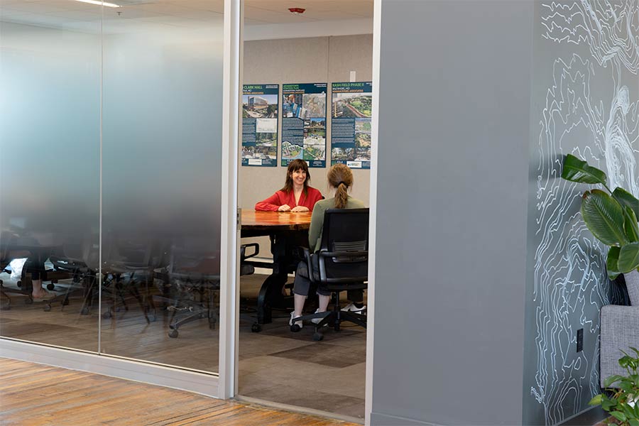 Casper Cloaking Technology by Designtex is a revolutionary screen cloaking window film designed to protect confidential information displayed on screens in office settings. This innovative film ensures that digital data is obscured from outside viewers while maintaining clear visibility into the conference room or office. By doing so, it fosters a collaborative and inviting work environment without compromising security. The technology allows businesses to uphold privacy standards and keep sensitive information safe, all while preserving the transparency and openness essential for effective teamwork and communication. Pictured: CASPER™ Cloaking Technology by Designtex, PF001-801
